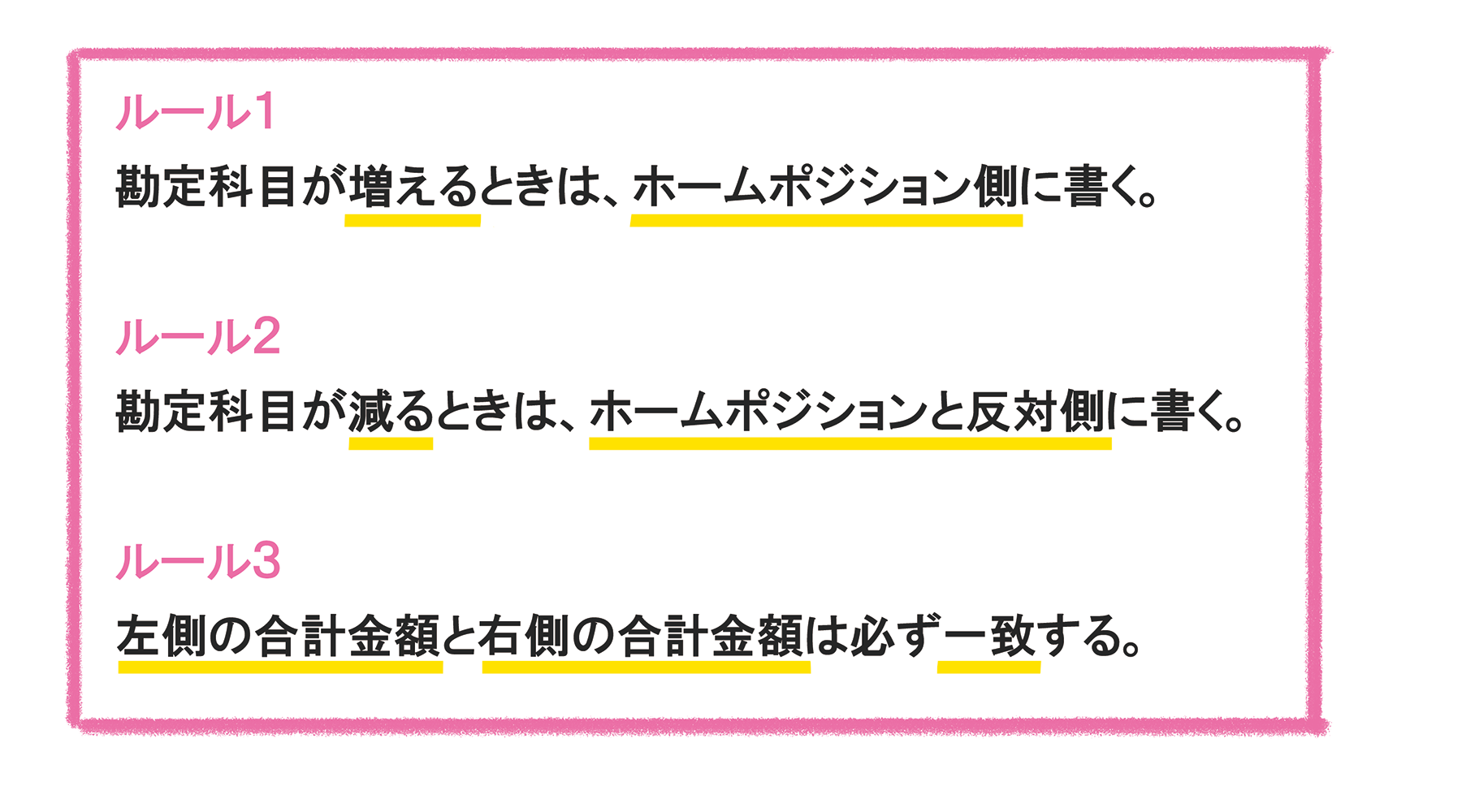 ルール1 勘定科目が増えるときは、ホームポジション側に書く。