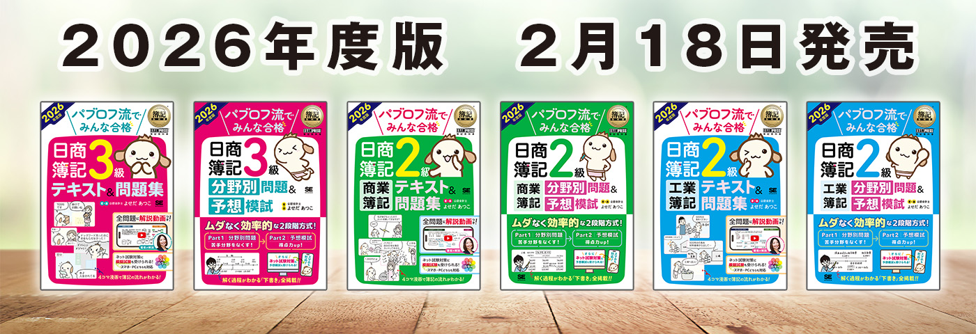 2026年度版のパブロフ簿記のテキストと分野別問題&予想模試を2026年2月18日に発売します!